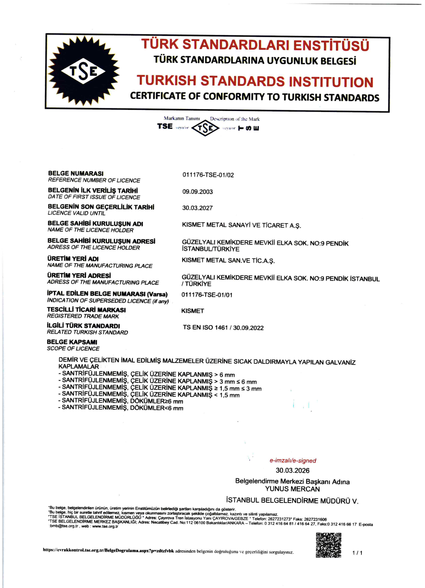 1950 yılında İstanbul Karaköy’de “Kıbrıs Galvaniz” adıyla sıcak daldırma galvaniz sektörüne adım atan firmamız, şirketin büyümesine ve faaliyete geçen yeni tesislere paralel olarak 1986’da Kısmet Metal Sanayi ve Ticaret A.Ş. adını alarak ticari hayatına devam etmektedir…
